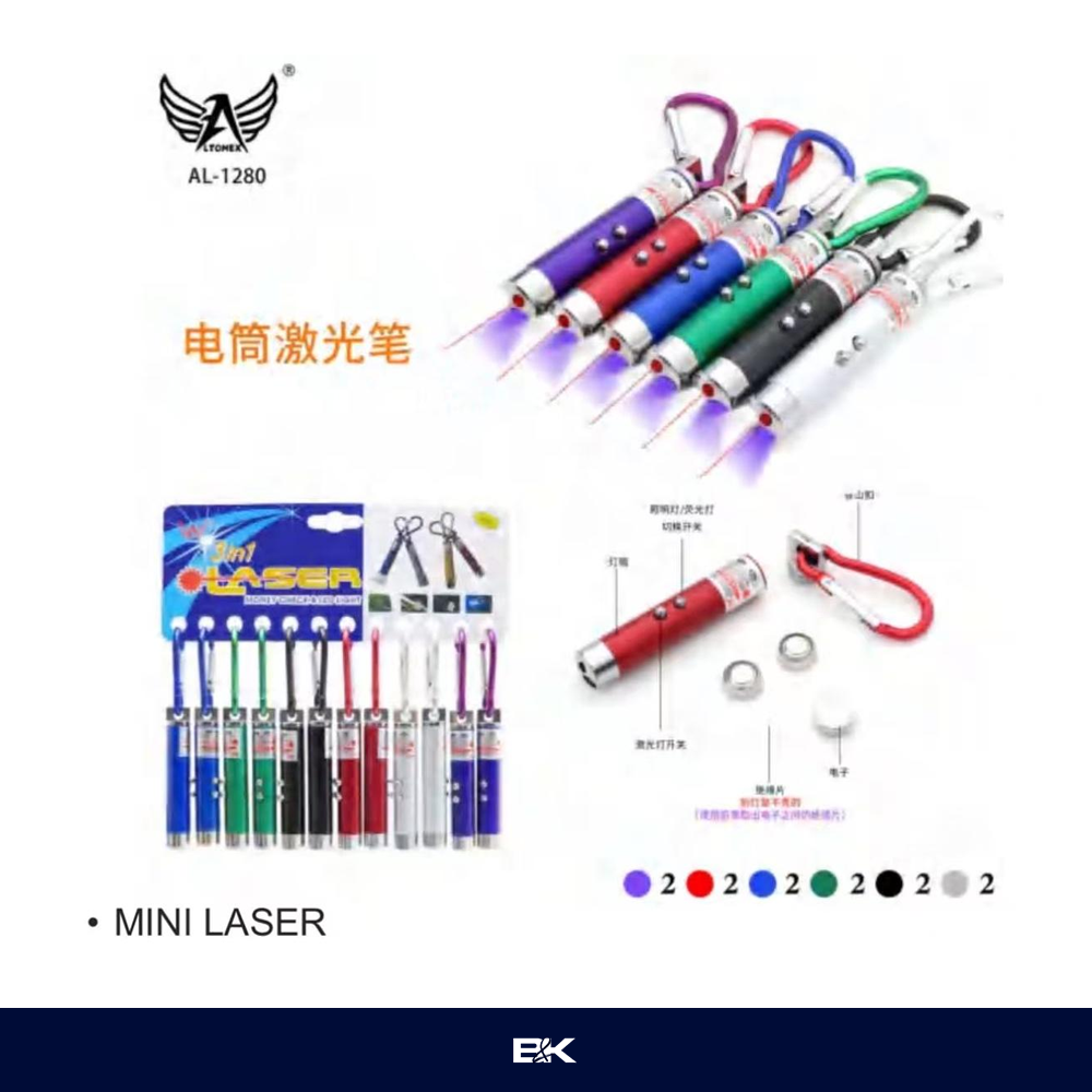 APONTADOR LASER 3 EM 1 COM CHAVEIRO AL-1280 | CARTELA C/12